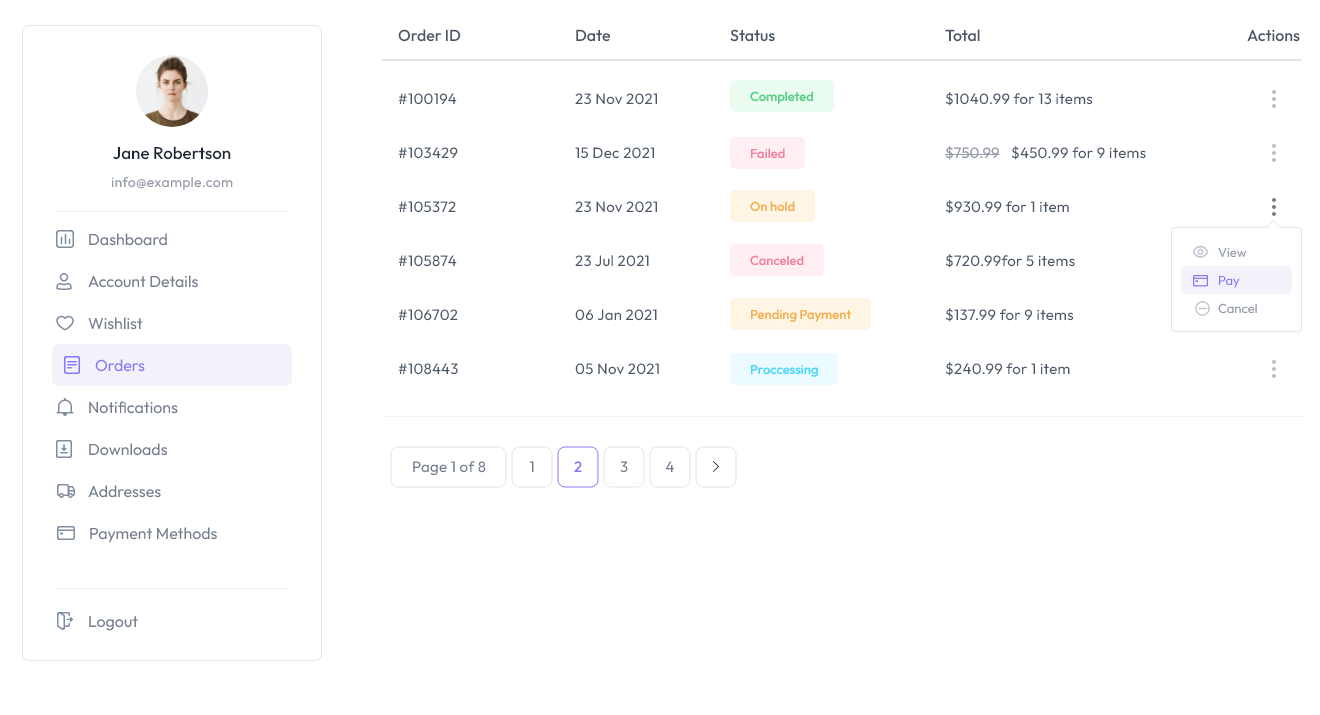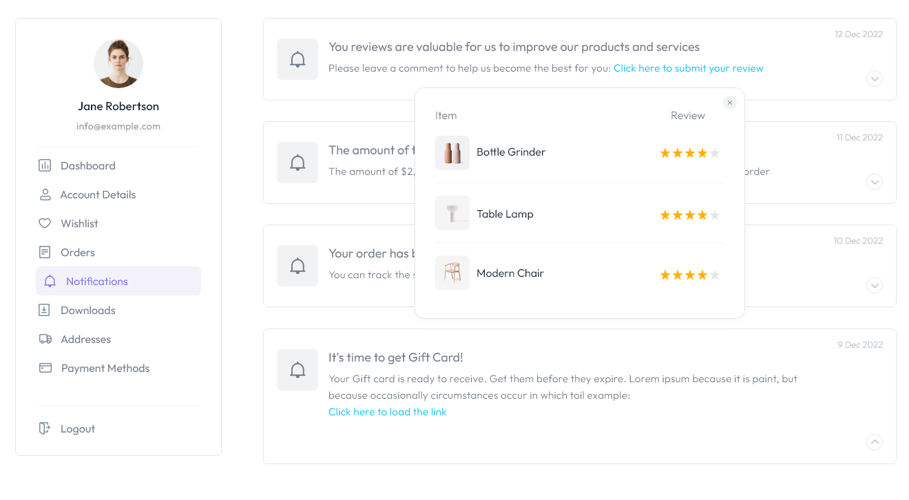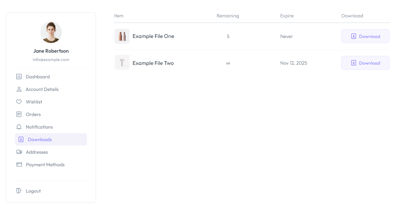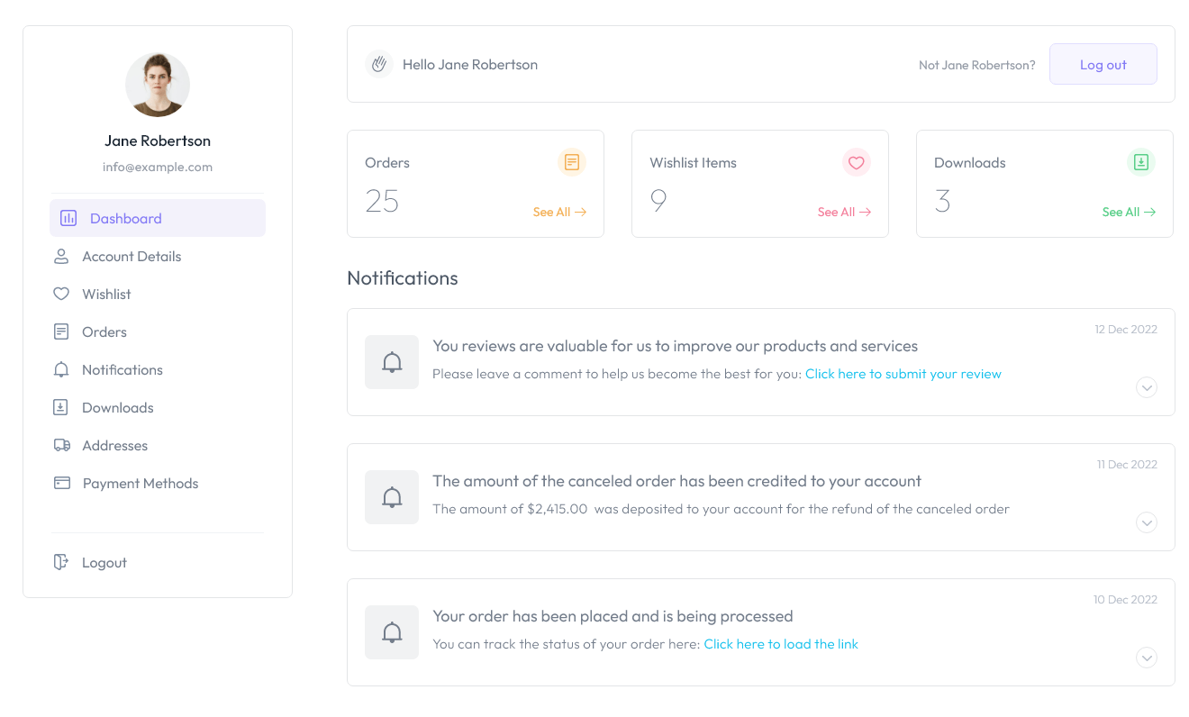 With My Account Page Builder for WooCommerce, you can add or remove custom sections from the My Account Page and alter the WooCommerce parts that come with it. These sections can contain any type of material, including words, photographs, videos, downloadable files, discount codes, and more.